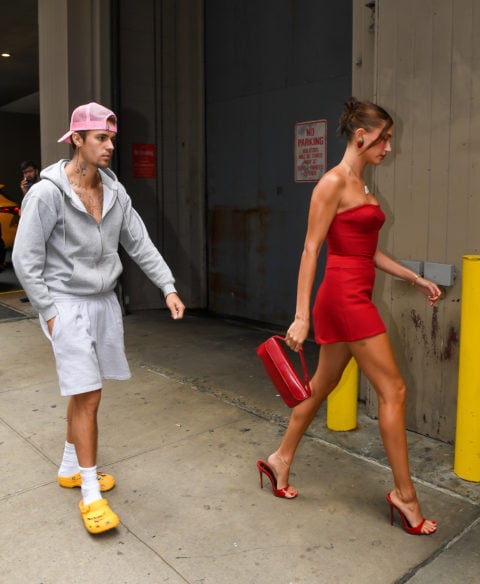 While promoting a new launch for Rhode, Hailey Bieber donned a bright red mini dress alongside Justin, who opted for an Adam Sandler-esque sweatsuit. Was he snubbing her big event? Was he staying lowkey to let her shine? Was this simply his way of declaring his love of loungewear? We may never know — but we’ll always have the memes.