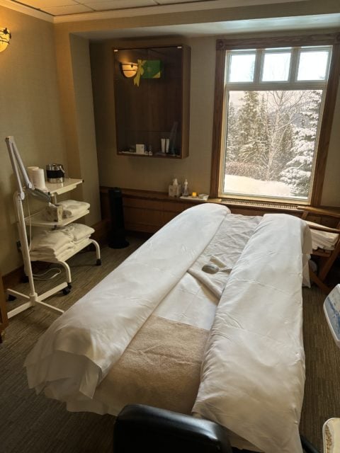 If you think you’ve felt pampered before, you’ve never been spoiled like this. Enter the Fairmont Spa Banff Springs. Before a single cream is placed on your skin, you are instantly immersed in a cozy cabin; the bed molds to your body as you’re wrapped in a burrito-like duvet, all while enjoying those majestic mountain views from the window.