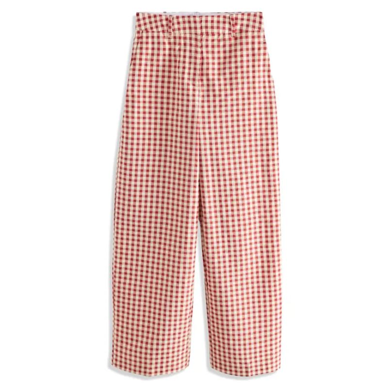 These gingham pants are a striking closet staple that sit halfway between suit pants and jeans, with their flattering high waist, button closure and chic straight leg.