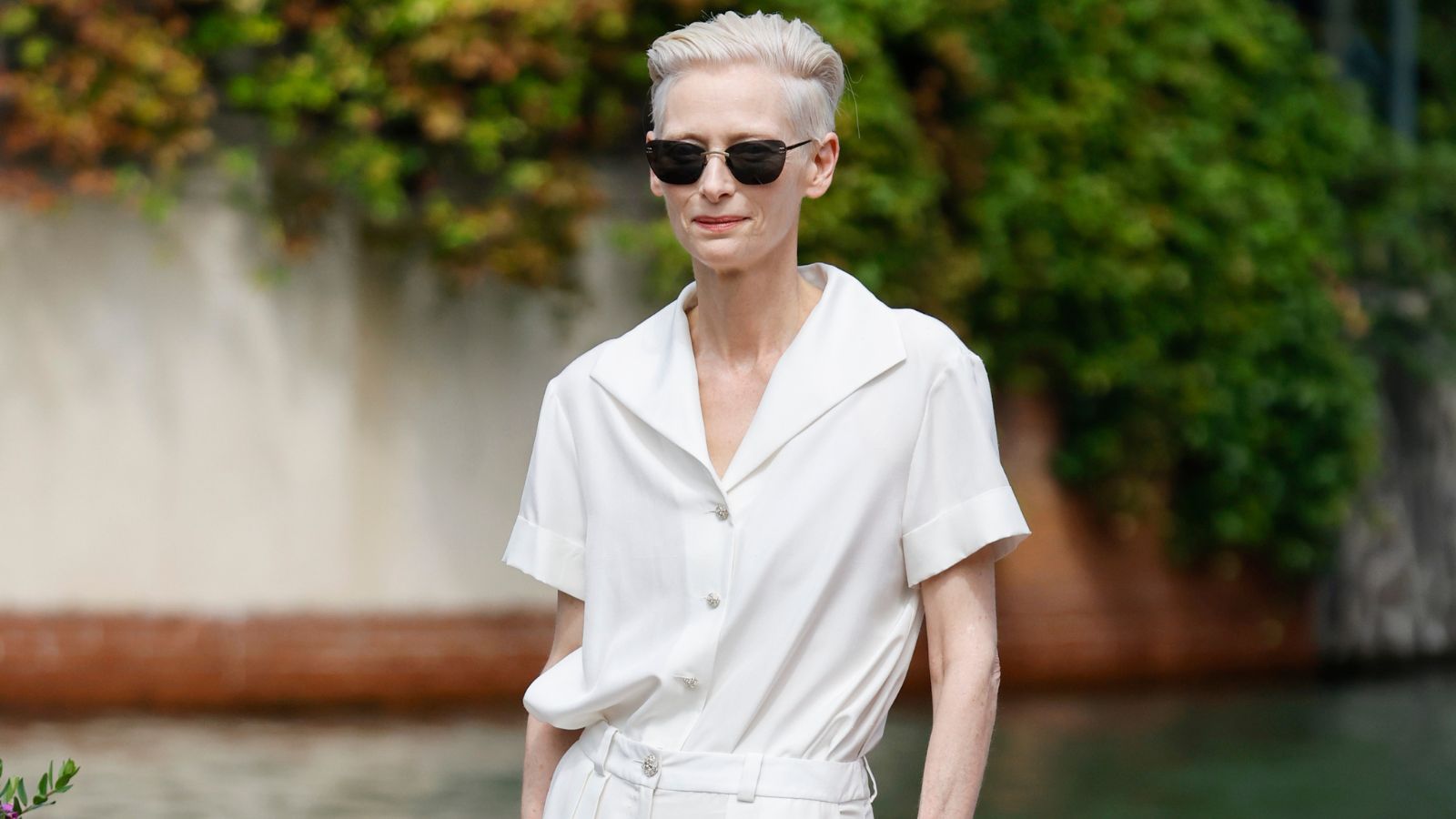 It’s the considered details that make Tilda’s outfit stand out from the crowd – from the oversized lapel to the embellished buttons – instantly elevating the style staples that make up her look. The actress leans into simplicity, pairing her classic, androgynous attire with some chunky black loafers, a cocktail ring and fuss-free sunglasses, proving once again that less is often more. The relaxed silhouette is also key in creating that effortless vibe. With a flowy shape, the A-lister has created definition by tucking in her loose-fit blouse, creating the illusion of a one-piece but with the ease of separates.