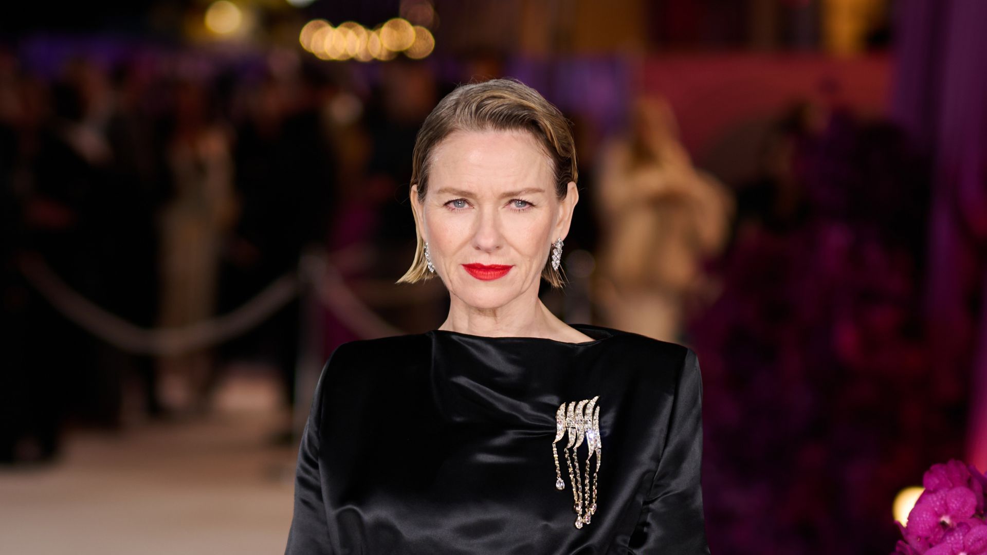 Naomi Watts styles black dress with sprakly brooch at ‘All’s Fair’ premiere